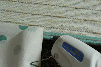 3-I got similar colored fabric(discounted home furnishing fabric-its thicker) to match the carpet. Cut 4 strips of fabric([2]3 1/2 inch x17 & [2]3 1/2 x 27 inch).