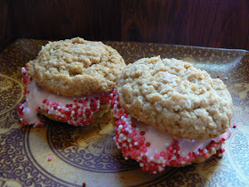 Mix it all together and scoop onto the baked cookies to make a sandwiches. Dip the edges in your choice of sprinkles. You could even use the already made cookies(chewy chips ahoy) if you're pressed for time.